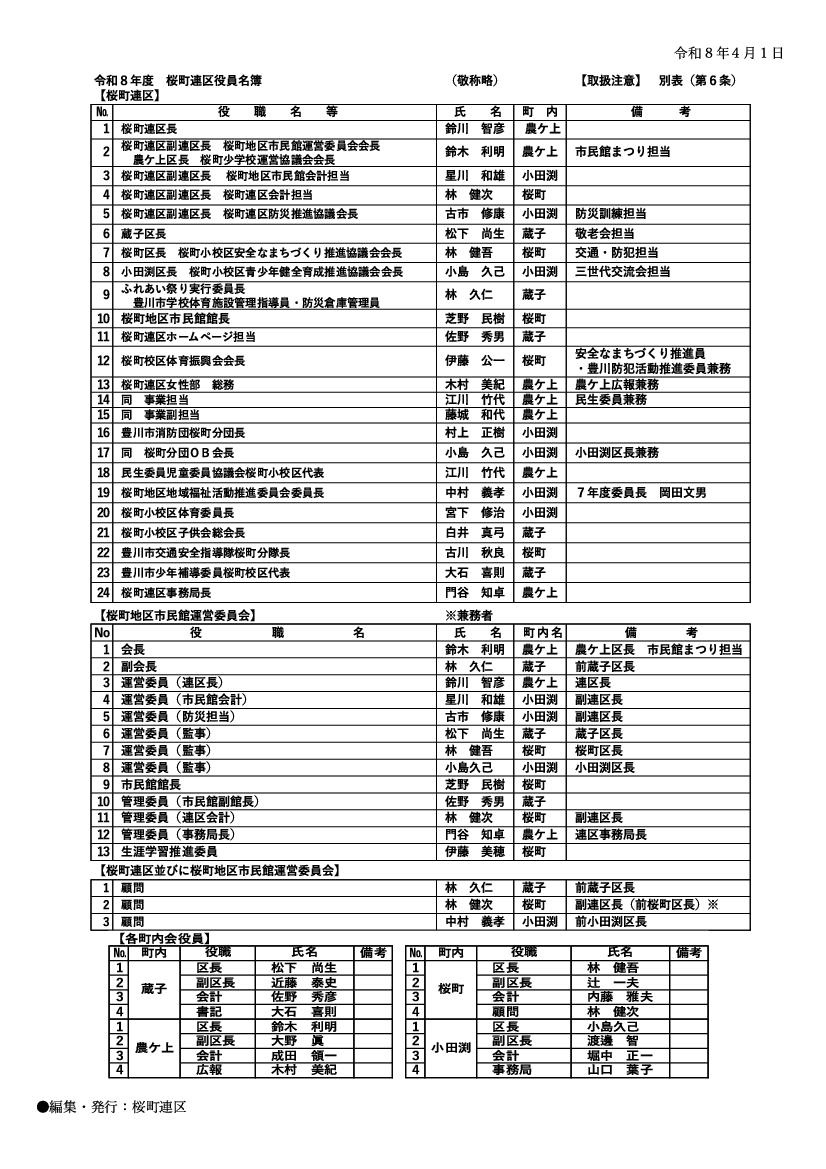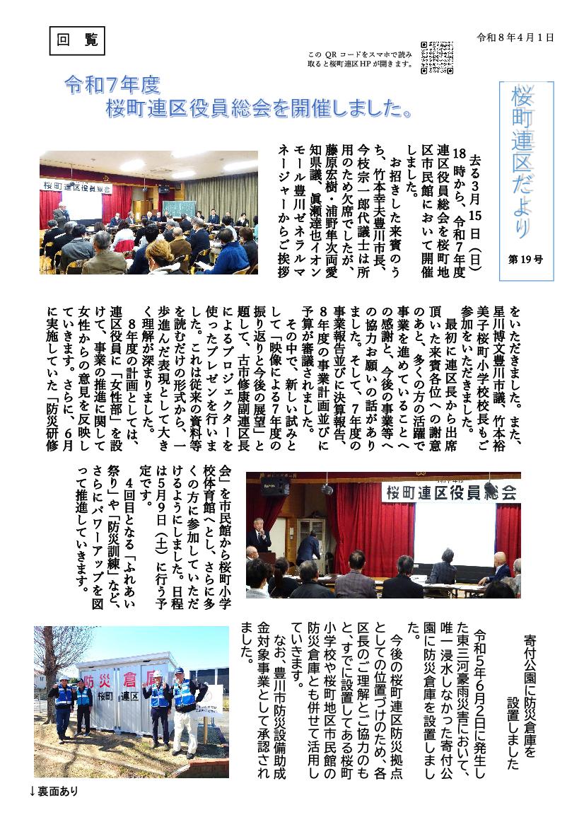 令和7年度連区役員総会が3月15日(日)地区市民館で開催されました。詳しくはサイトナビ「桜町連区からの連絡」に掲載しました。